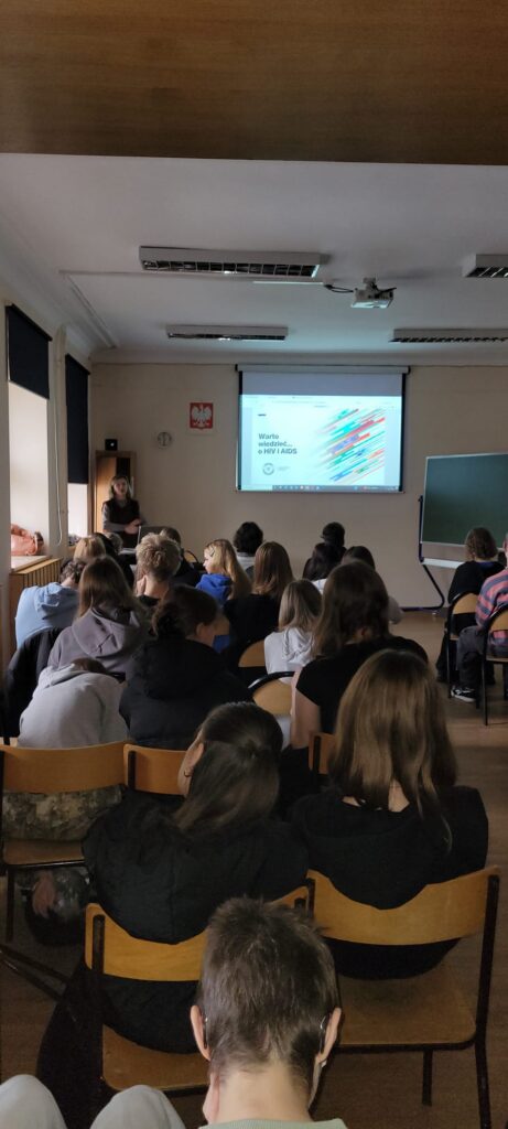 W ramach kampanii edukacyjnej „Warto wiedzieć o HIV i AIDS” uczniowie wzięli udział w zajęciach, których celem było zwiększenie świadomości na temat wirusa HIV oraz choroby AIDS. Zdobytą wiedzę mogli zweryfikować wykonując test online.